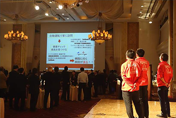 | 出展企業を回っての情報収集活動 | 出展者レセプションでの中間発表 |