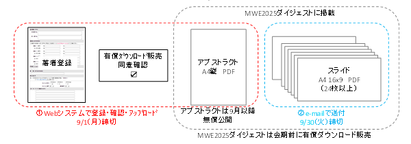 - 電子原稿は、来年度 MWE 2026 の実施準備時期にWebにて公開する場合がありますので、予めご承知おきください。